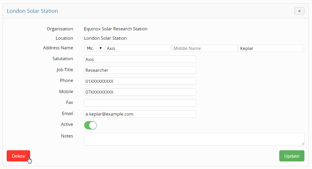 - Click ‘Delete’ on the right at the bottom of the Contact Details
