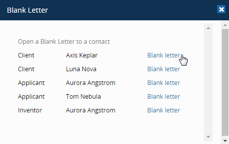 Blank Letters can be generated from the Contacts tab of a case (See 'Generate Adhoc Correspodence' for more information.