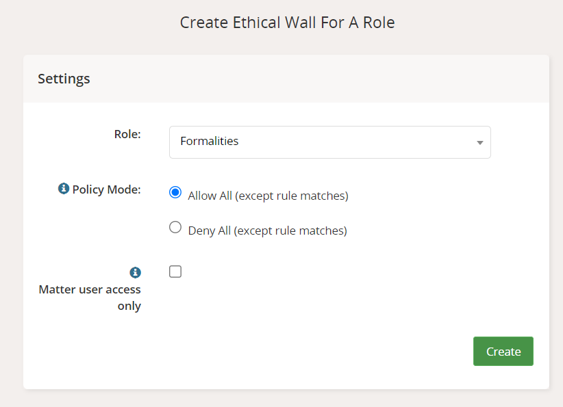 2. On the Ethical Walls Management page, under Role select Create.