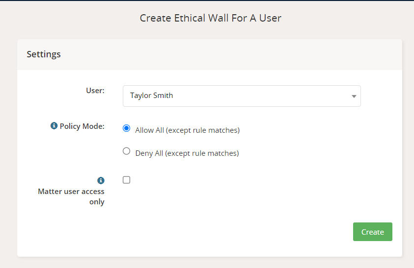 Create an Ethical Wall for a User