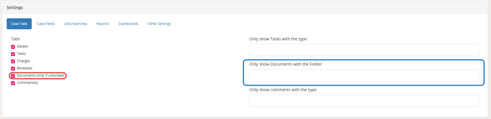 On the first tab, 'Case Tabs', you will need to select the checkbox for Documents (circled in red above). This allows the end user to see documents.