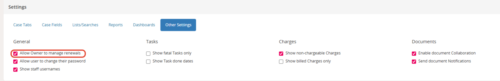 3. To allow renewal instruction through the portal, go to 'Other Settings':